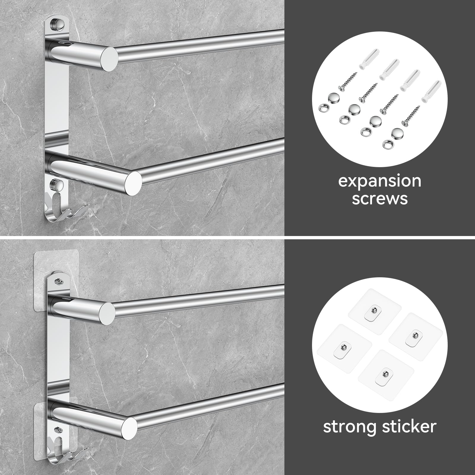- 【 Easy installation 】: Without drilling holes, the towel rack can be installed using our matching adhesive to protect the wall; The towel rack can also be drilled and installed with screws.