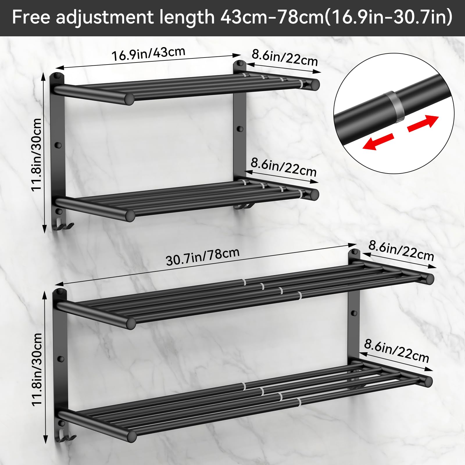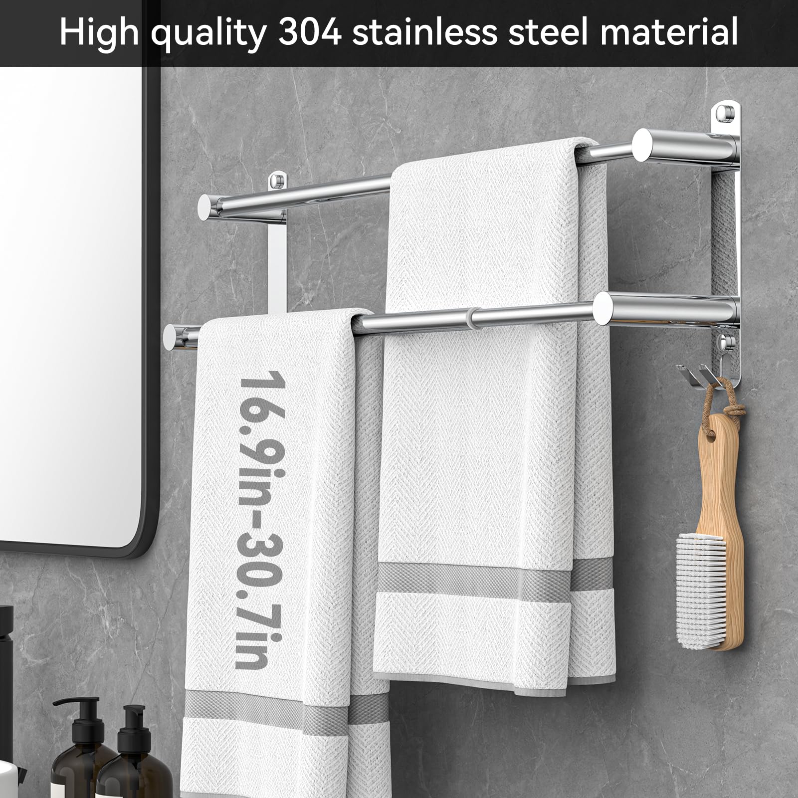 Adjustable Towel Bar for Bathroom Wall Mount17-30.7inch Adhesive Shower Towel Rack Stainless Steel Bath Towel Holders for Toilet Kitchen Double Towel Hanger (Double Towel Rack)