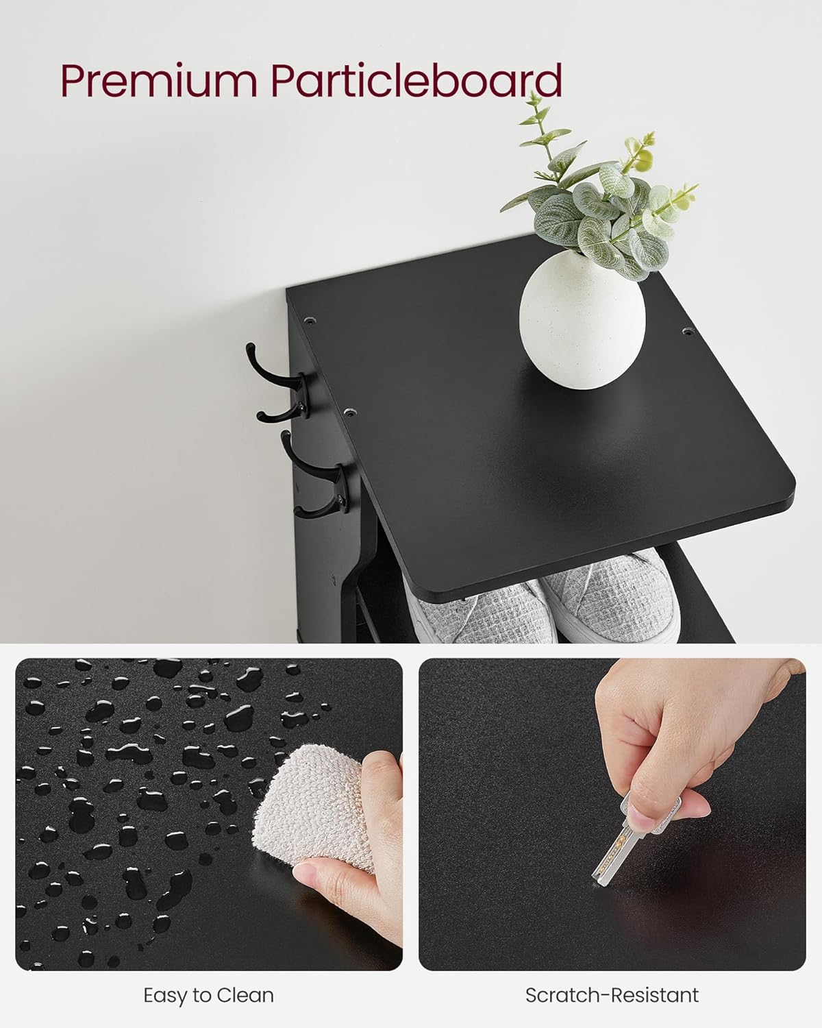 - Convenient Hook Storage: Hang your keys and wallets on the narrow shoe rack's hooks for a quick grab-and-go during your morning rush. Even better, the hooks can be installed on the left or right as needed